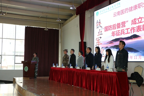 校团委副书记张捷同志宣读云南医药健康职业学院关于同意成立国防后备营的有关文件。